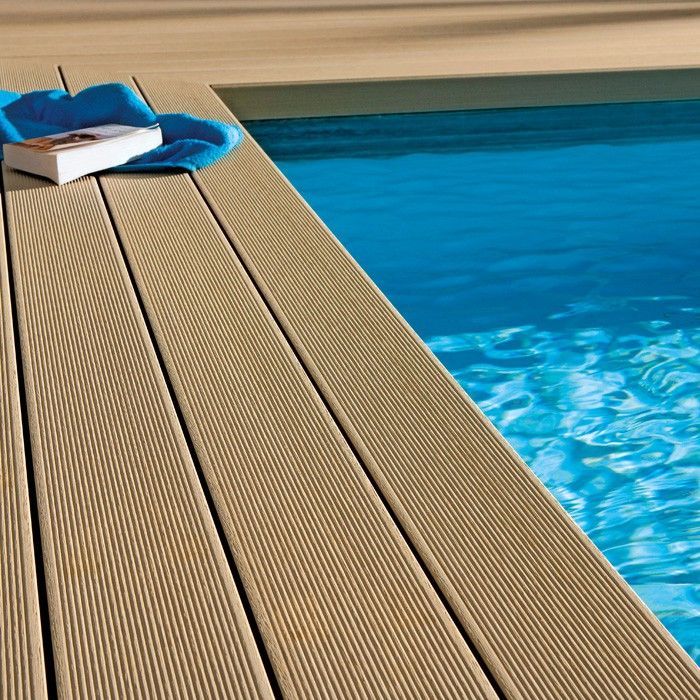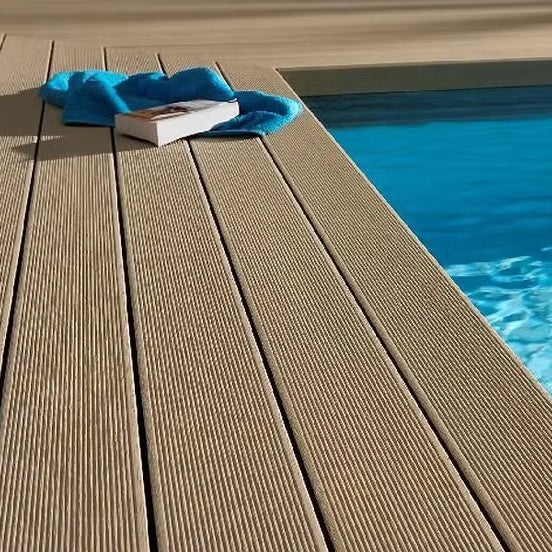 Sàn gỗ ngoài trời bột gỗ vân dập nổi sâu hiệu ứng 3D, giảm giá sốc cho hồ bơi