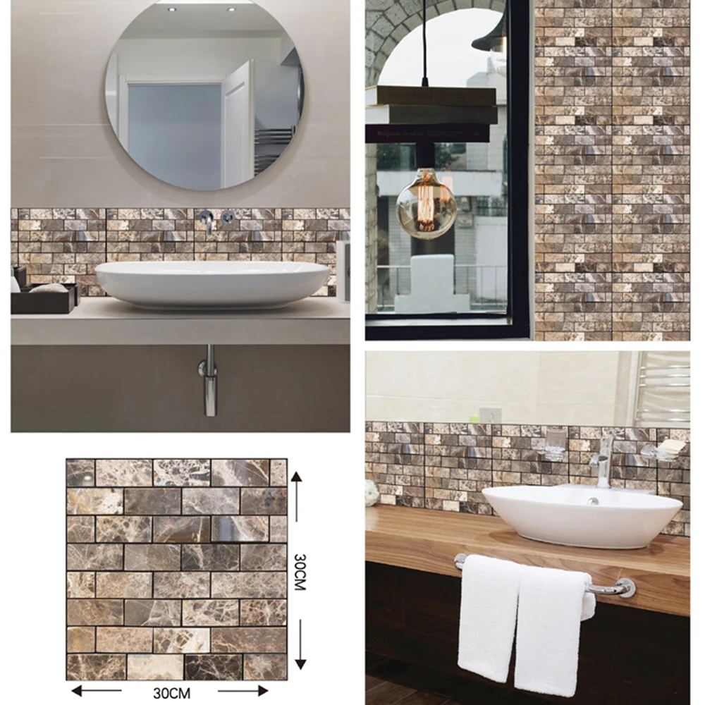 Self Adhesive Tile Wall Sticker Home Decor 3D PVC Brick Sticker Wall Decor For Kitchen Cupboard Bathroom Waterproof Wallpaper
