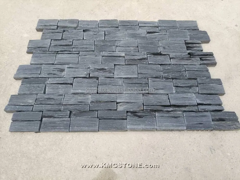 Gạch ốp tường bằng đá phiến đen hiện đại được chứng nhận CE Đá văn hóa ngoài trời Khách sạn ngoại thất Thuốc chống xói mòn Tự nhiên.