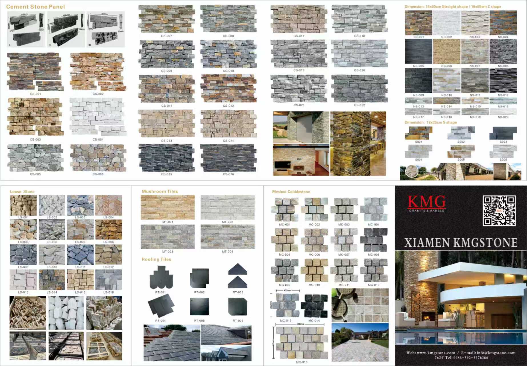 CÔNG TY TNHH KMGSTONE Hạ Môn được tìm thấy vào năm 1998 và tọa lạc tại thành phố Hạ Môn, tỉnh Phúc Kiến của Trung Quốc. Chúng tôi là nhà sản xuất và bán buôn đá hàng đầu, chúng tôi sở hữu ba nhà máy. Nhà máy sản xuất bia mộ là Shuitou, chuyên về đá granite Palisade và đá lề đường, tấm, cầu thang, bệ cửa sổ, mặt bàn, đá lát đường, lò sưởi, bia mộ, tượng đài, v.v.; Chi nhánh đầu tiên được xây dựng tại Hà Bắc vào năm 2010, chủ yếu cung cấp tấm ốp và tấm ốp tường bằng đá phiến, lát, ngói, mái nhà... vv; Nhà máy chi nhánh thứ hai được thành lập tại Giang Tây, đặc biệt cung cấp gạch đá phiến xám, tấm ốp tường và tấm ốp. Là một trong những nhà xuất khẩu đá lớn nhất, chúng tôi có hơn 20 năm kinh nghiệm xuất khẩu. KMGSTONE mong muốn thiết lập sự hợp tác hiệu quả cho hoạt động kinh doanh lâu dài với bạn.