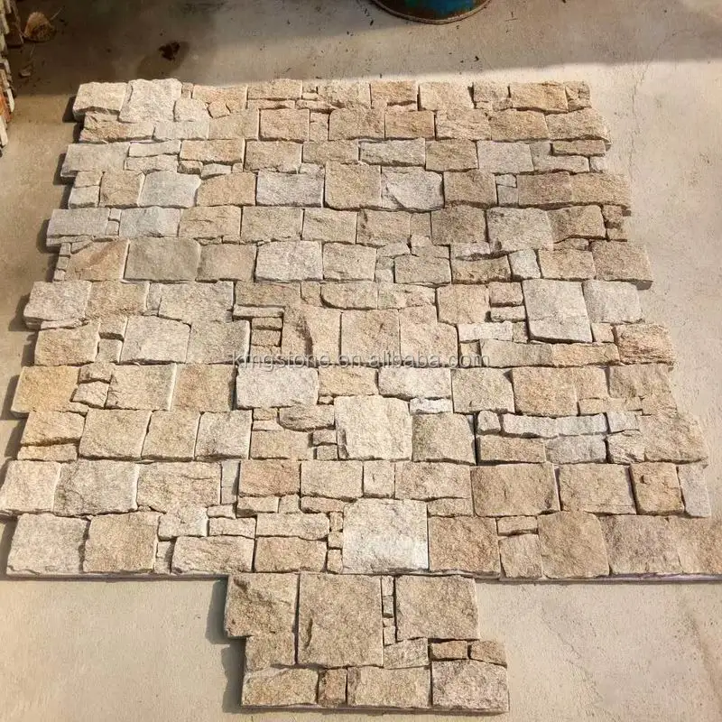 Tấm Ốp Tường Ngoại Thất Đá Phiến Vôi Vàng Tự Nhiên Thiết Kế Hiện Đại