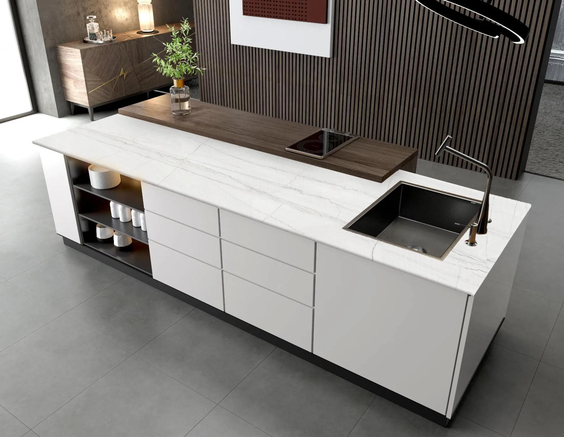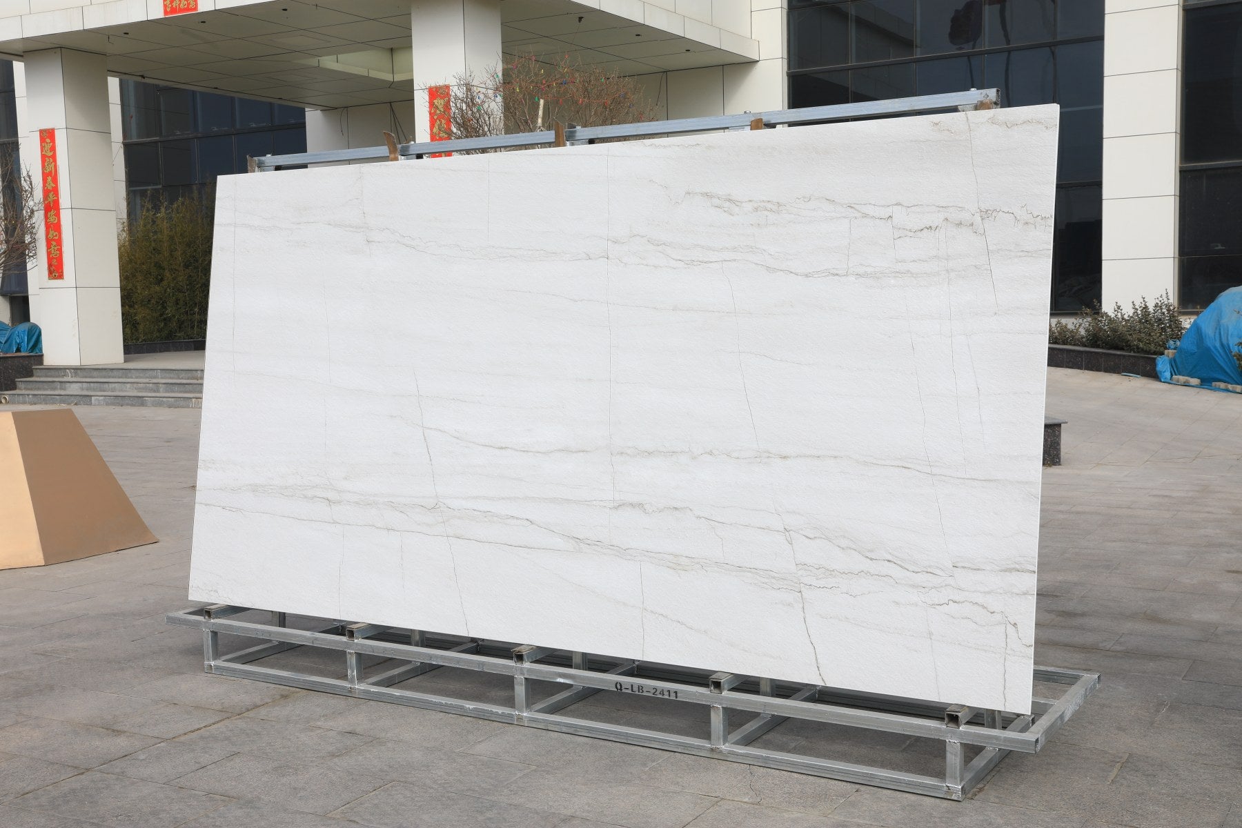 Tấm Đá Nung Kết Brazil Statuario Vân Xám Cho Mặt Bàn Đảo Bếp Sang Trọng