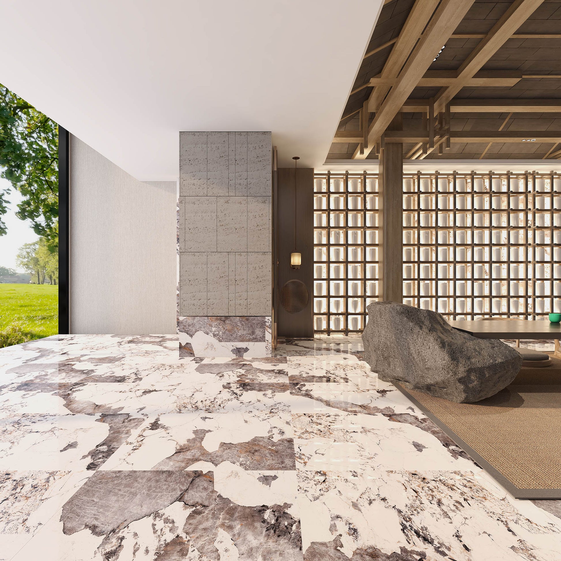 Tấm Sứ Ốp Tường Cao Cấp Vân Đá Cẩm Thạch, Tráng Men Bóng Cao, Màu Trắng 1200x600