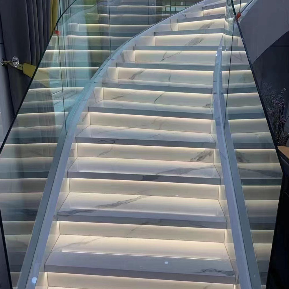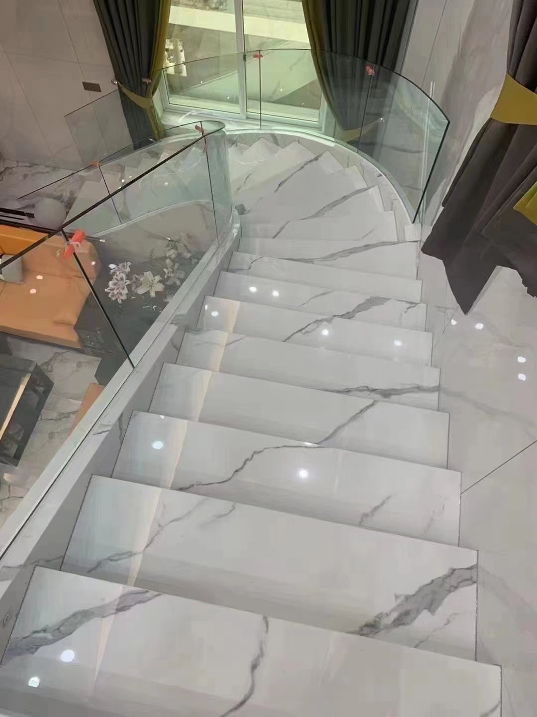 Tấm sứ porcelain vân đá cẩm thạch trắng bóng dùng cho lát sàn, bậc cầu thang, gạch ốp lát