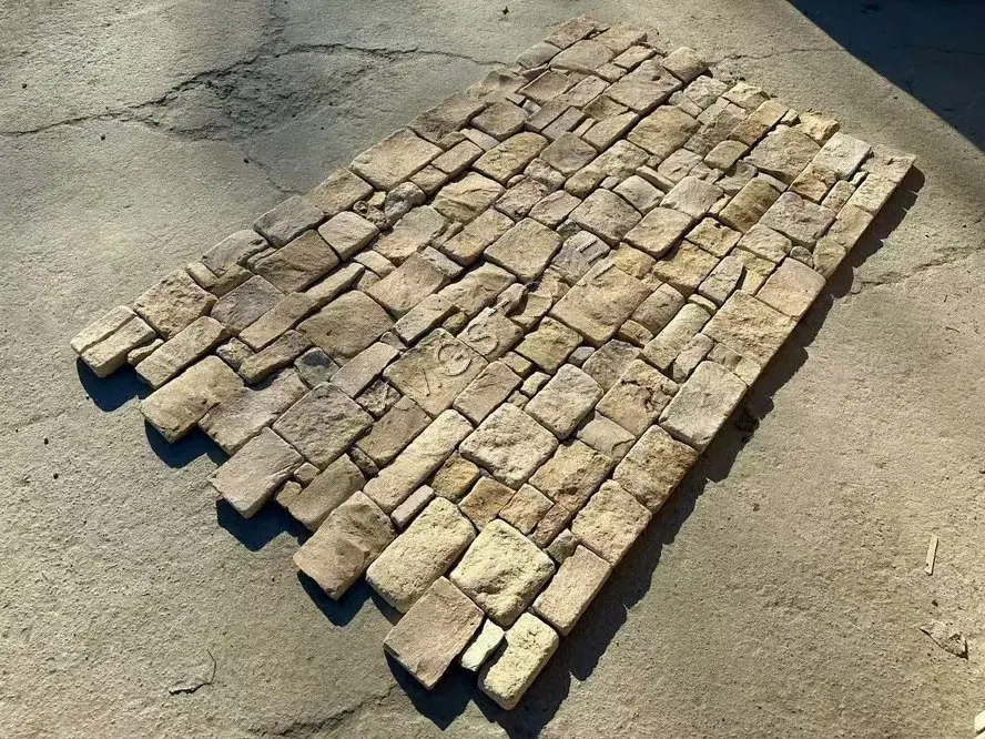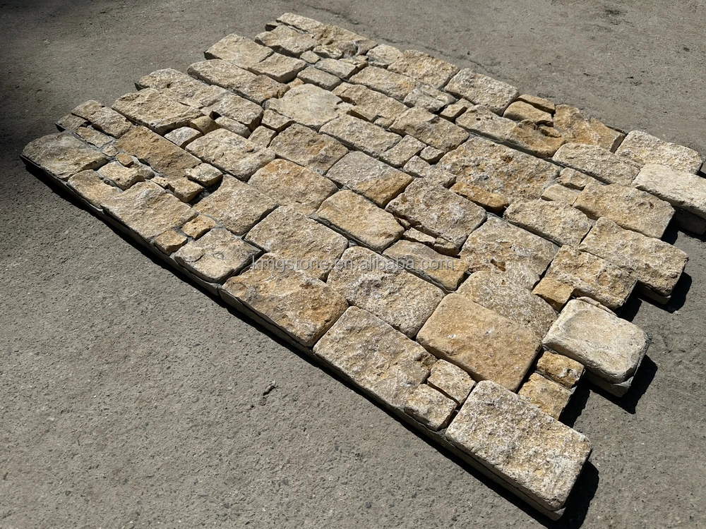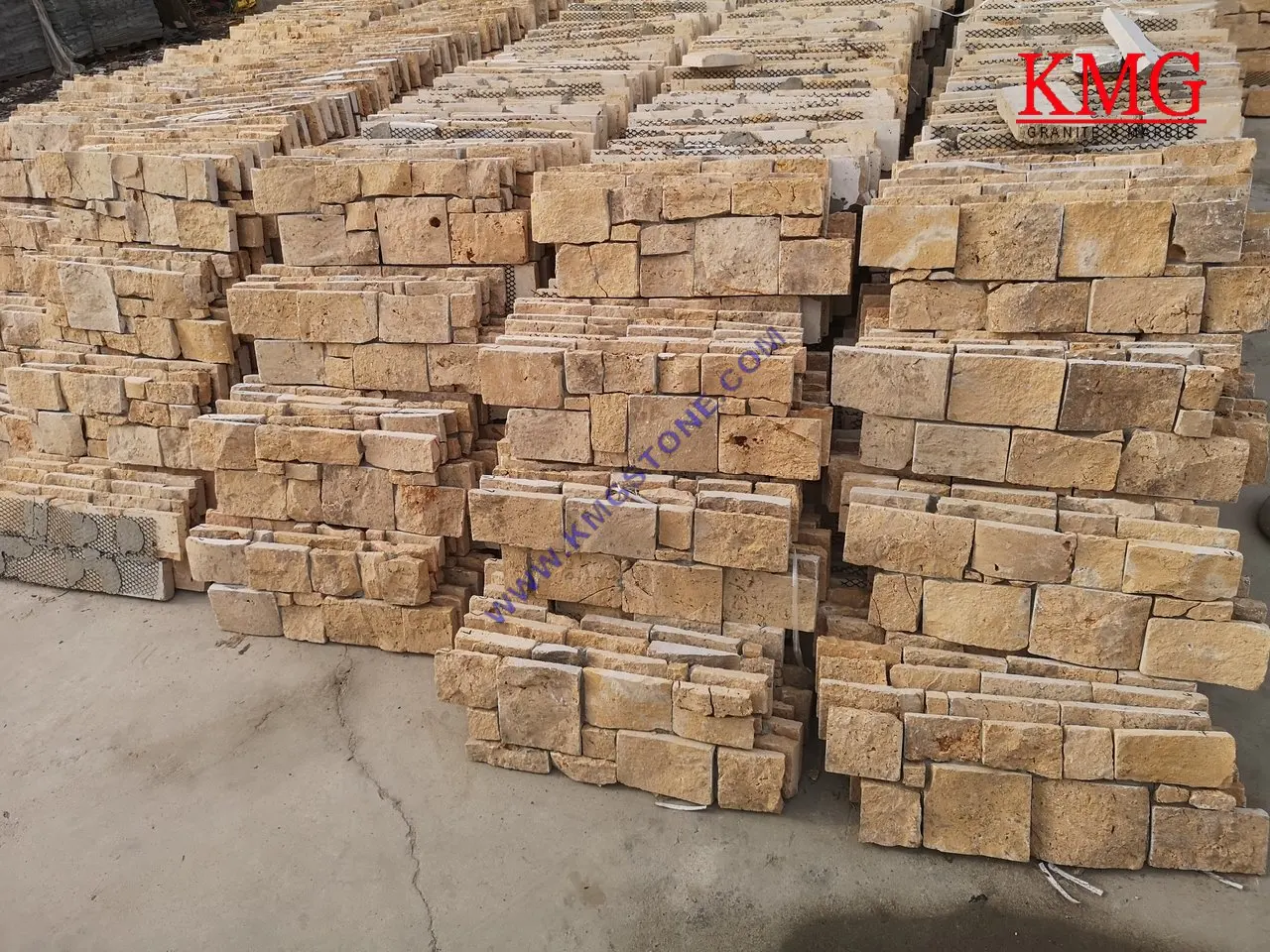 Tấm đá Granite vàng xi măng Trung Quốc, ốp tường ngoại thất kiểu đá gờ, bề mặt khò lửa, ăn mòn axit, dùng cho khách sạn, biệt thự, ngoài trời.