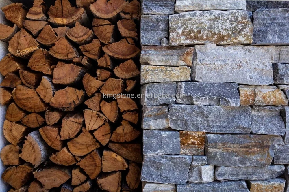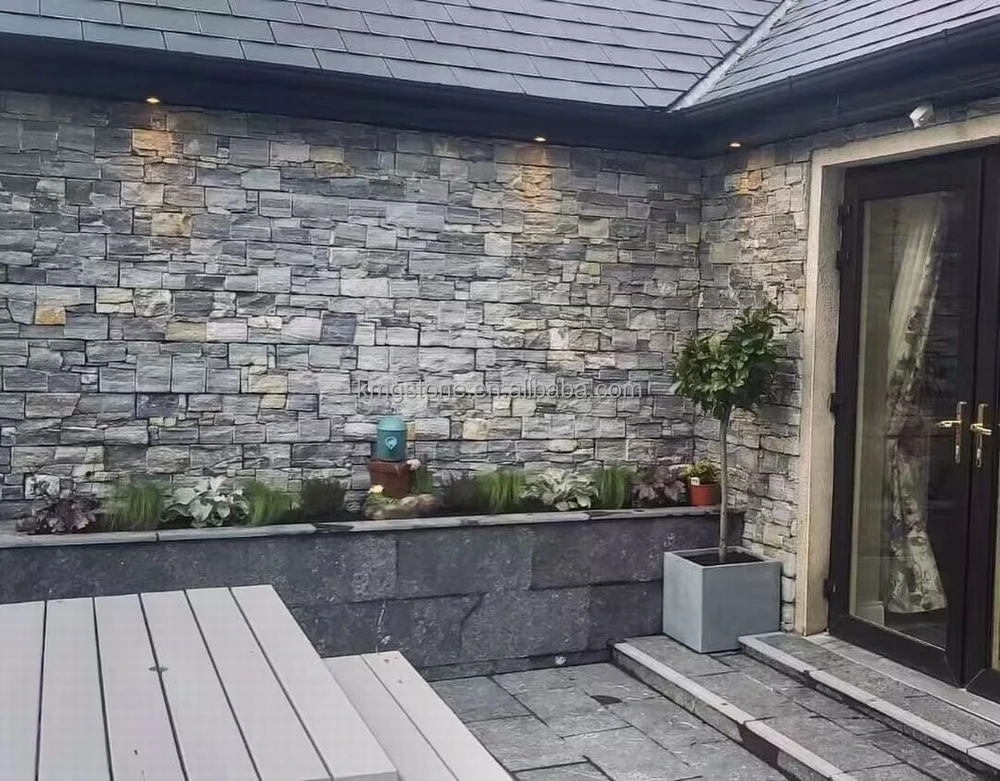 Tấm ốp đá phiến xanh xếp lớp cho tường ngoại thất Đá ốp đá phiến xanh