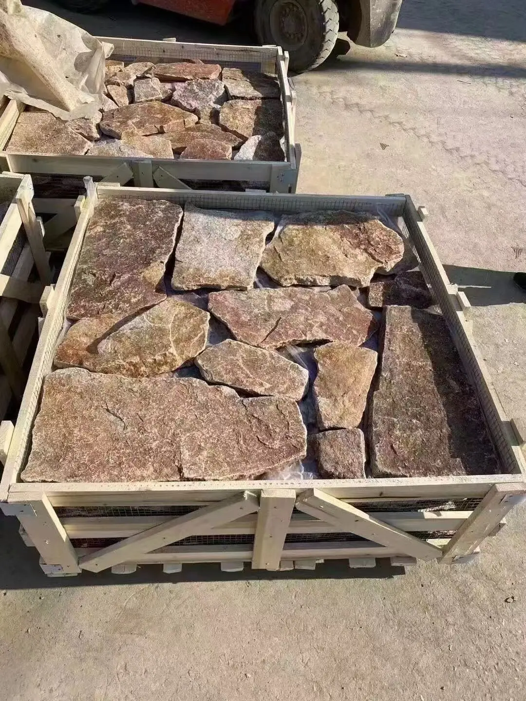 Tấm ốp ngoại thất đá rối tự nhiên vàng ngọc trai thiết kế hiện đại cho mặt tiền biệt thự công viên bền bỉ thương hiệu KMGSTONE bảo hành trên 5 năm
