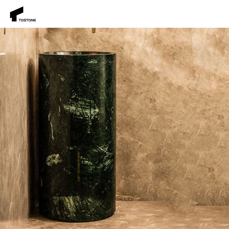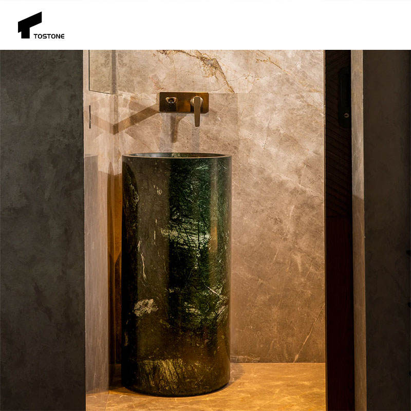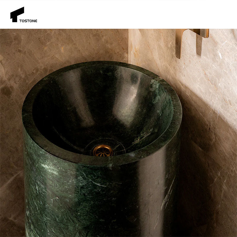Tostone Bồn rửa chân cột bằng đá cẩm thạch màu xanh tự nhiên hiện đại, phổ biến dùng cho trang trí nội thất phòng tắm gia đình, biệt thự, khách sạn tùy chỉnh