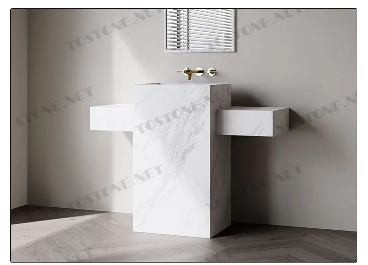 Tostone Bồn rửa chân đế đặt sàn bằng đá cẩm thạch trắng hiện đại