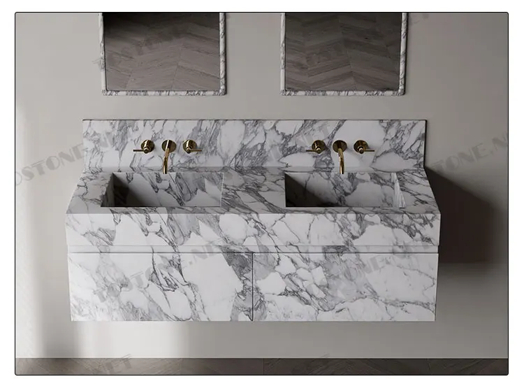 Tostone Mặt bàn lavabo phòng tắm gắn tường bằng đá cẩm thạch Arabescato Corchia tự nhiên đẹp dành cho nội thất tùy chỉnh hiện đại sang trọng
