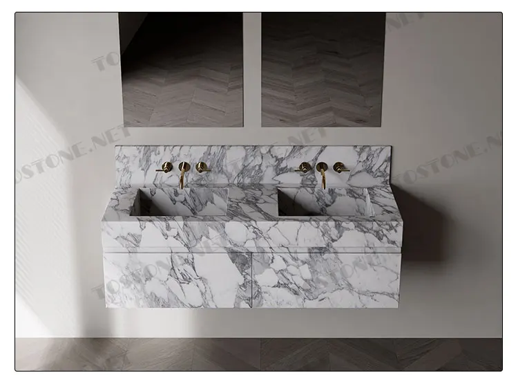 Tostone Mặt bàn lavabo phòng tắm gắn tường bằng đá cẩm thạch Arabescato Corchia tự nhiên sang trọng
