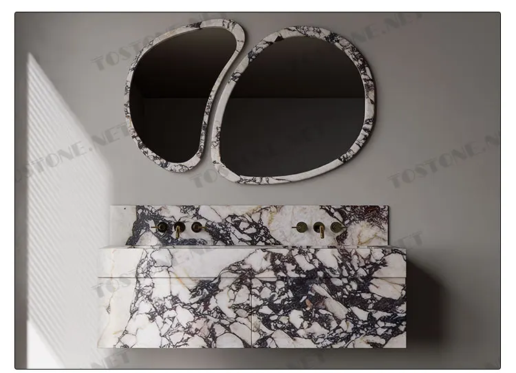 Tostone Mặt bàn lavabo phòng tắm gắn tường bằng đá hoa cương Calacatta Viola tự nhiên chống thấm nước bền bỉ, dùng cho nội thất tùy chỉnh phòng vệ sinh nhỏ