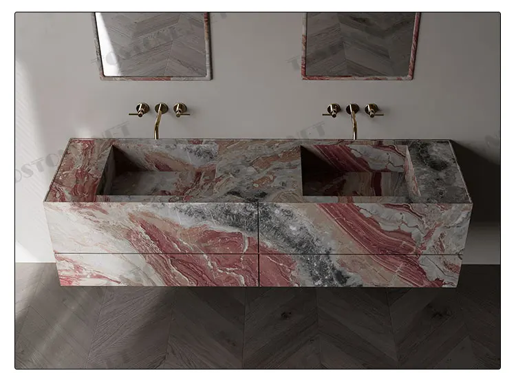 Tostone Tủ Lavabo Sang Trọng Đá Cẩm Thạch Đỏ Monica Cổ Điển Bền Bỉ